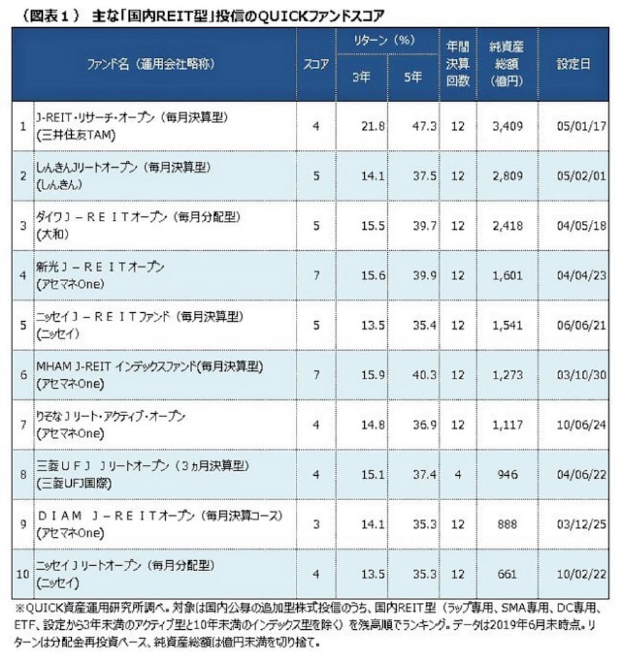 国内reit型 Quickファンドスコアで比較 日本経済新聞