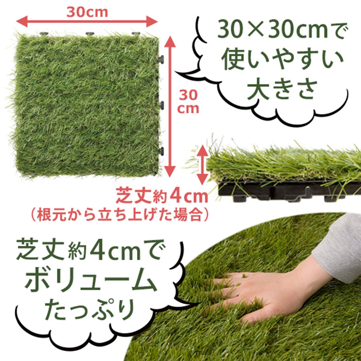 人工芝 ジョイント 30 30cm 1枚 芝丈4cm 芝 リビングート ポンパレモール店 ポンパレモール