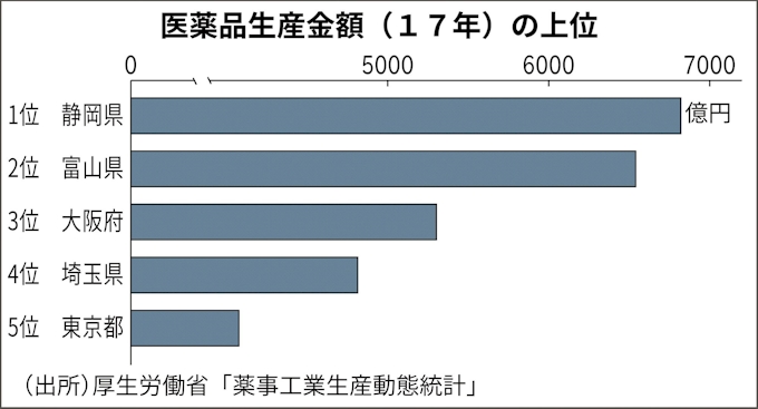 医薬品生産額 富山が2位に 17年 静岡に首位譲る 日本経済新聞