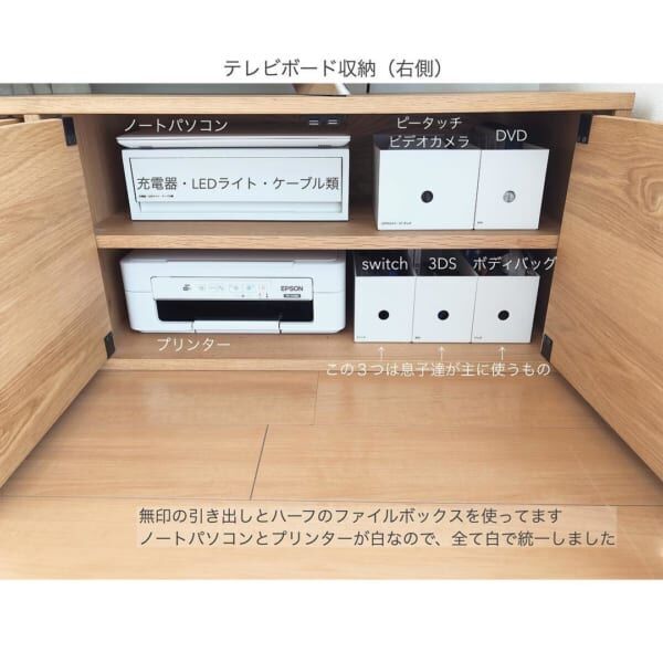 無印の1 2ファイルボックスでテレビボードの収納 わたし時間