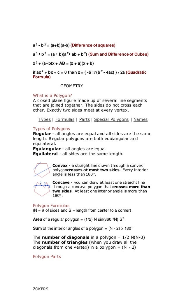 List Of Math Formulas